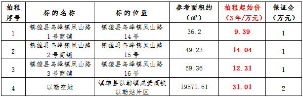 受相關(guān)產(chǎn)權(quán)人委托,公開(kāi)拍租鎮(zhèn)雄縣國(guó)有資產(chǎn)使用權(quán)。拍租遵循公開(kāi)、公平、公正、誠(chéng)實(shí)信用、價(jià)高者得的原則。現(xiàn)將有關(guān)事項(xiàng)公告如下: