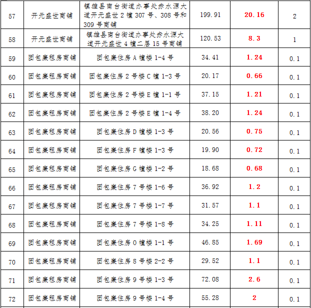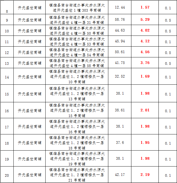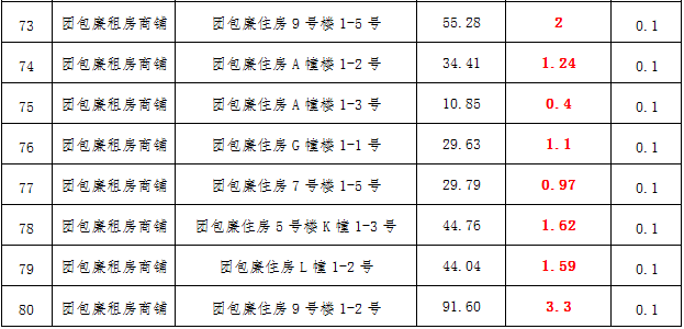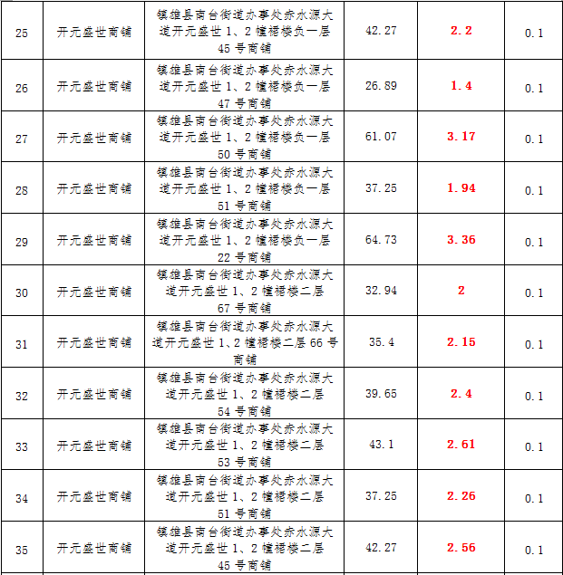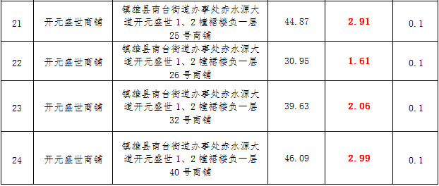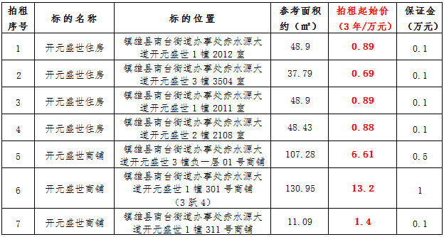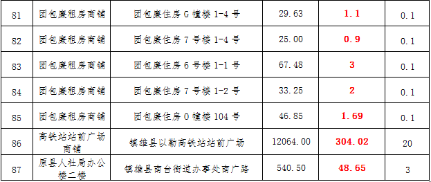(三)拍租鎮(zhèn)雄縣城市運(yùn)營(yíng)管理有限公司國(guó)有門(mén)面3年期使用權(quán),詳見(jiàn)下表: